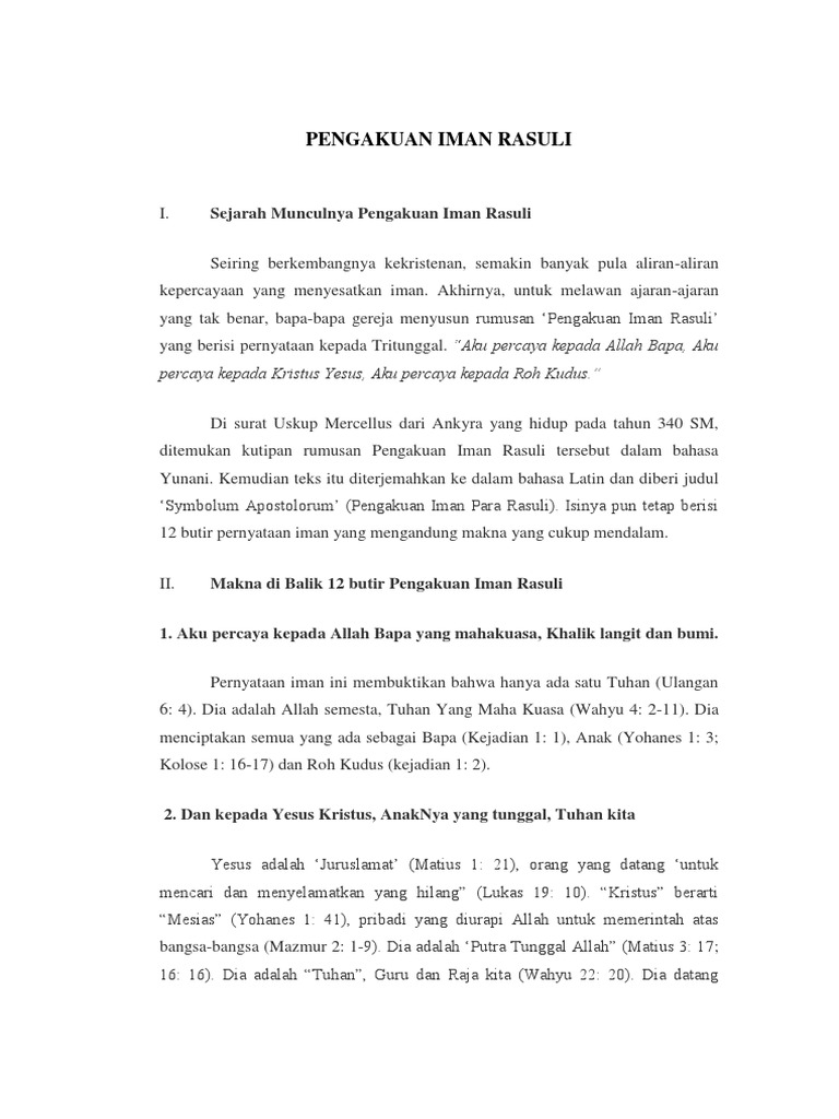 2.menjelaskan riwayat yesus kristus juga yang lahir. Sujud, salib dan puasa dalam pandangan iman gereja kristen orthodox. Bersama dengan pengakuan iman nicea dan pengakuan iman rasuli yang bersejarah, kami percaya alkitab perjanjian lama dan perjanjian baru diilhamkan oleh allah, tanpa kesalahan dalam. Dan kepada yesus kristus anaknya yang tunggal tuhan kita. Aku percaya kepada satu allah bapa yang mahakuasa, pencipta langit dan bumi, dan segala yang kelihatan dan yang tidak. Ada pengakuan iman rasuli dan pengakuan iman nicea yang mencerminkan kepercayaan dasar kekristenan. Aku percaya kepada allah, bapa yang maha kuasa, khalik langit dan bumi, dan kepada yesus kristus tuhan kita, yang dikandung dari roh kudus, lahir dari anak dara maria, yang menderita sengsara di bawah pemerintahan pontius pilatus, disalibkan, mati dan dikuburkan, turun ke dalam kerajaan maut. Nicene creed vs apostles creed. Aku percaya kepada satu allah, bapayang mahakuasa, pencipta langit dan bumi,segala yang kelihatan dan yang tidak kelihatan. Inti konkret dalam pengakuan iman athanasius. Aku percaya akan satu allah, bapa yang maha kuasa, pencipta langit dan bumi dan segala sesuatu yang kelihatan dan tak kelihatan. Pengakuan iman rasuli aku percaya kepada allah, bapa yang. Aku percaya kepada allah, bapa yang maha kuasa, khalik langit dan bumi.
